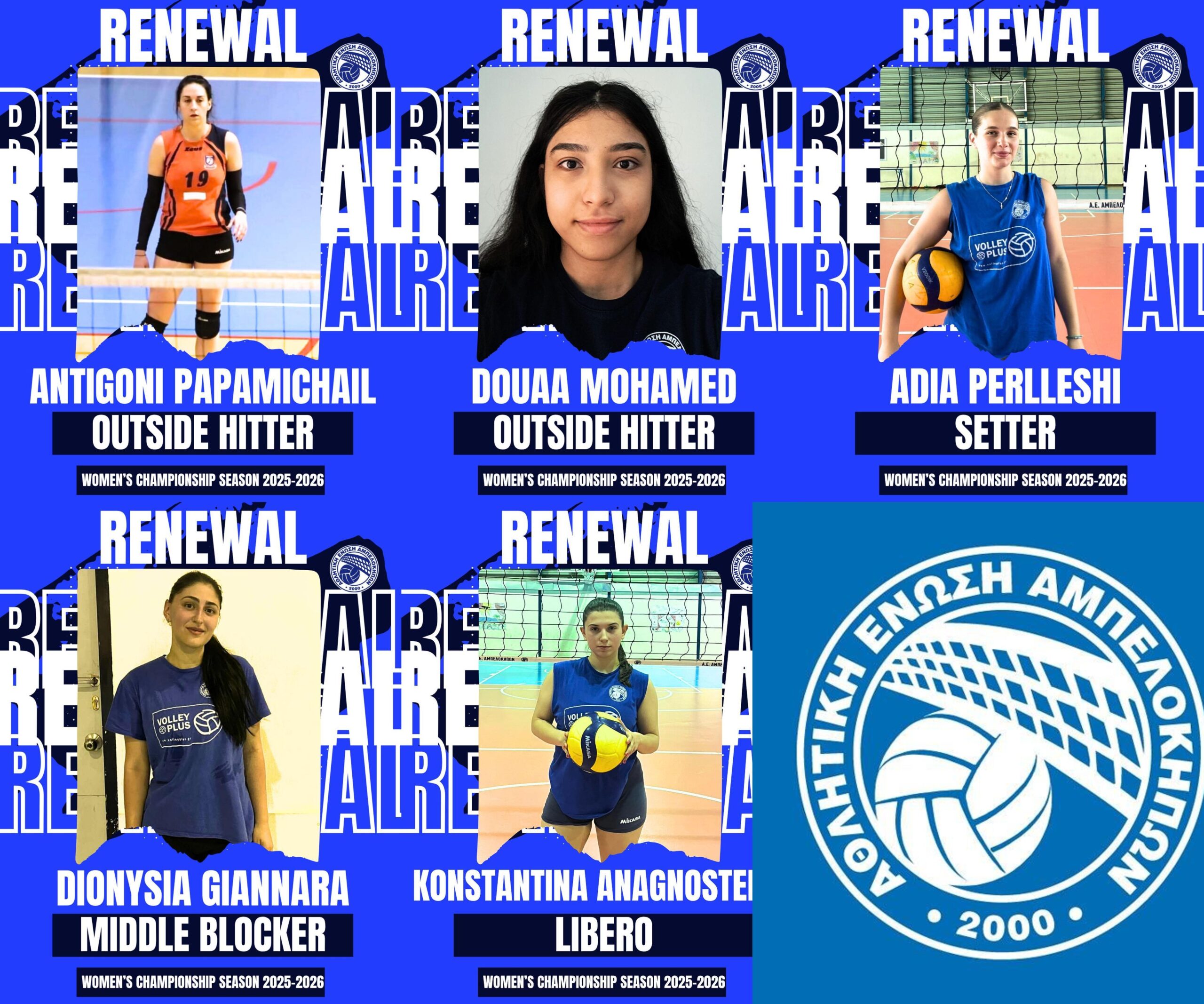 Η Αθλητική Ένωση Αμπελοκήπων ανακοίνωσε μια σειρά αθλητριών με τις οποίες θα συνεχίσει τη νέα σεζόν: