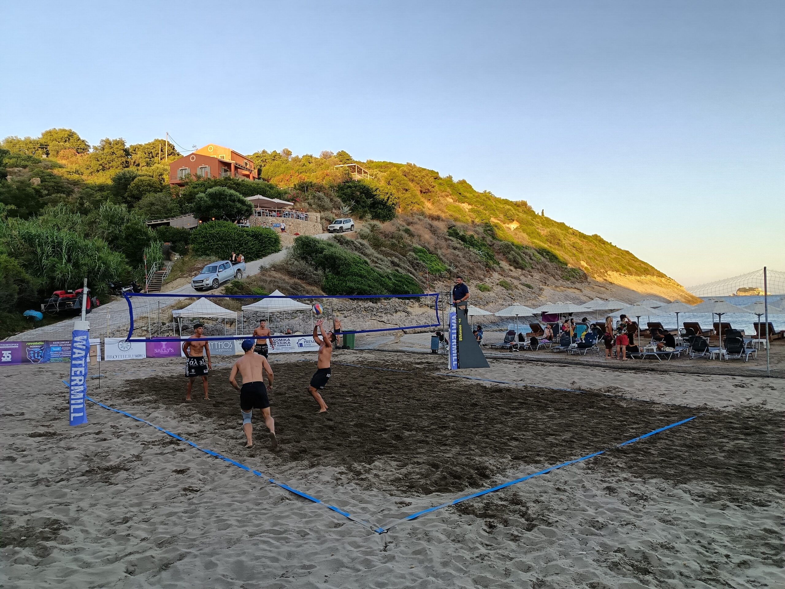 Η δράση ξεκίνησε στην παραλία του Άη Χέλη όπου διοργανώνεται το Kefallonia Open με την διεξαγωγή των προημιτελικών σε άνδρες και γυναίκες.