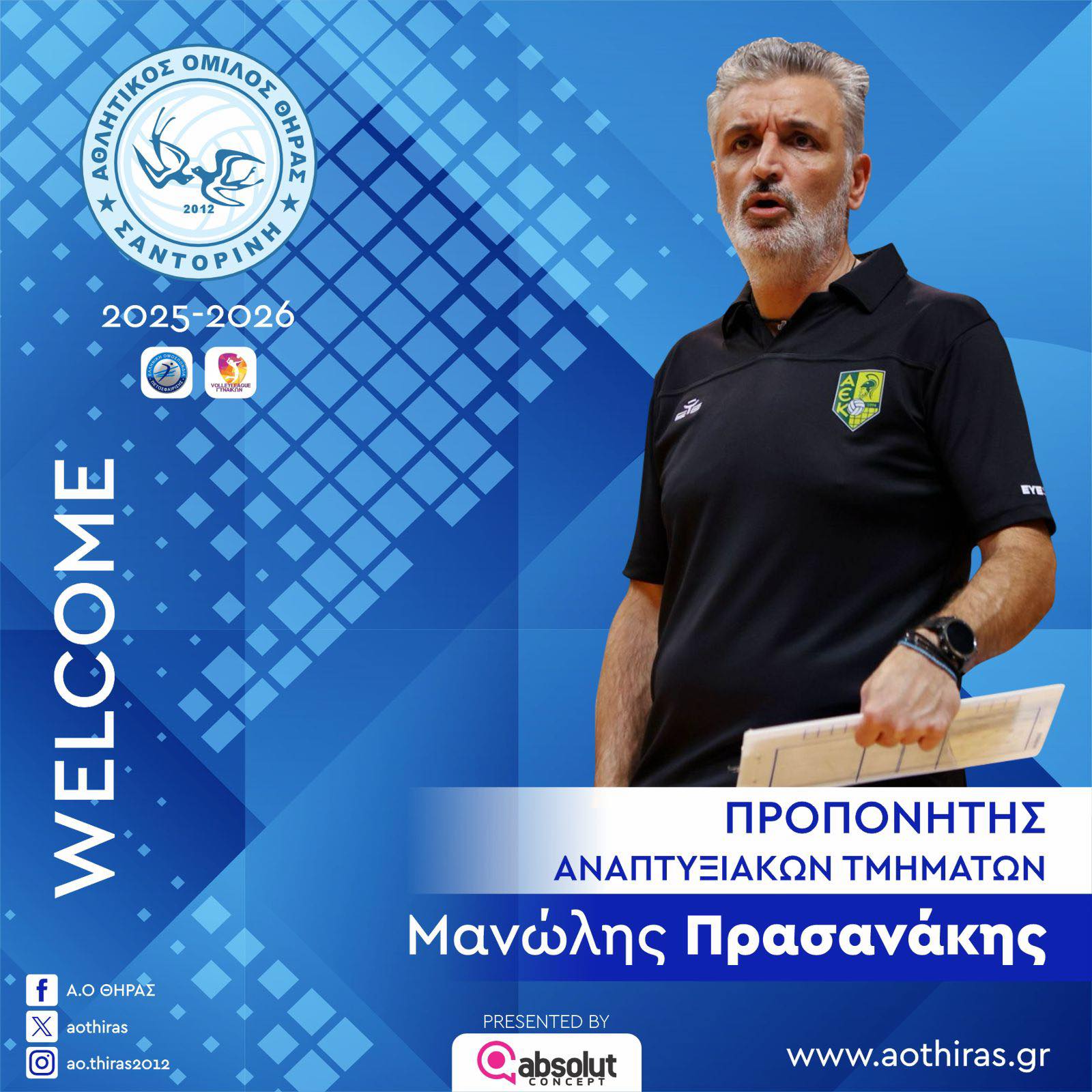Ο Αθλητικός Όμιλος Θήρας με χαρά ανακοινώνει την έναρξη της συνεργασίας του με τον Μανώλη Πρασανάκη,