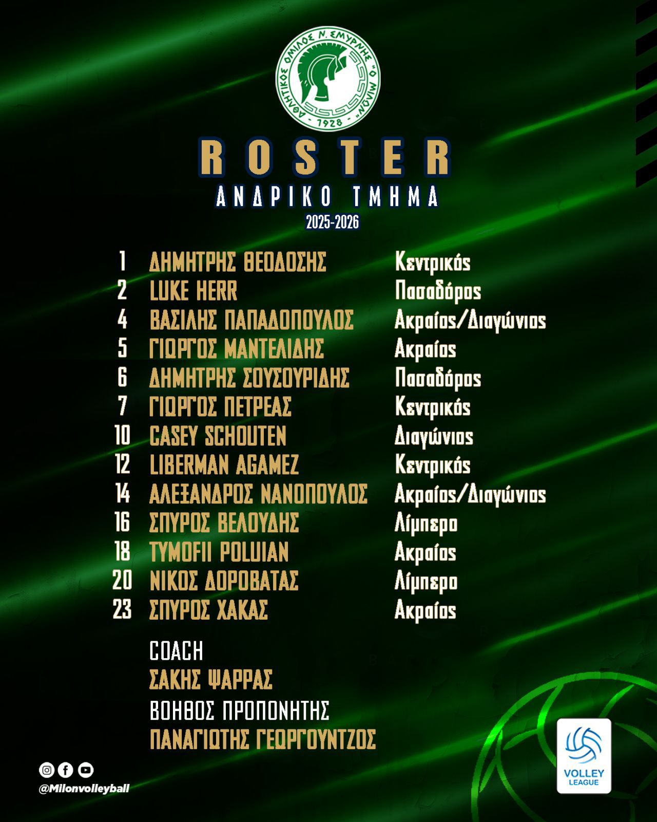 ΡΟΣΤΕΡ Α.Ο.Ν.Σ. ΜΙΛΩΝ VOLLEYBALL – ΣΕΖΟΝ 2025-2026