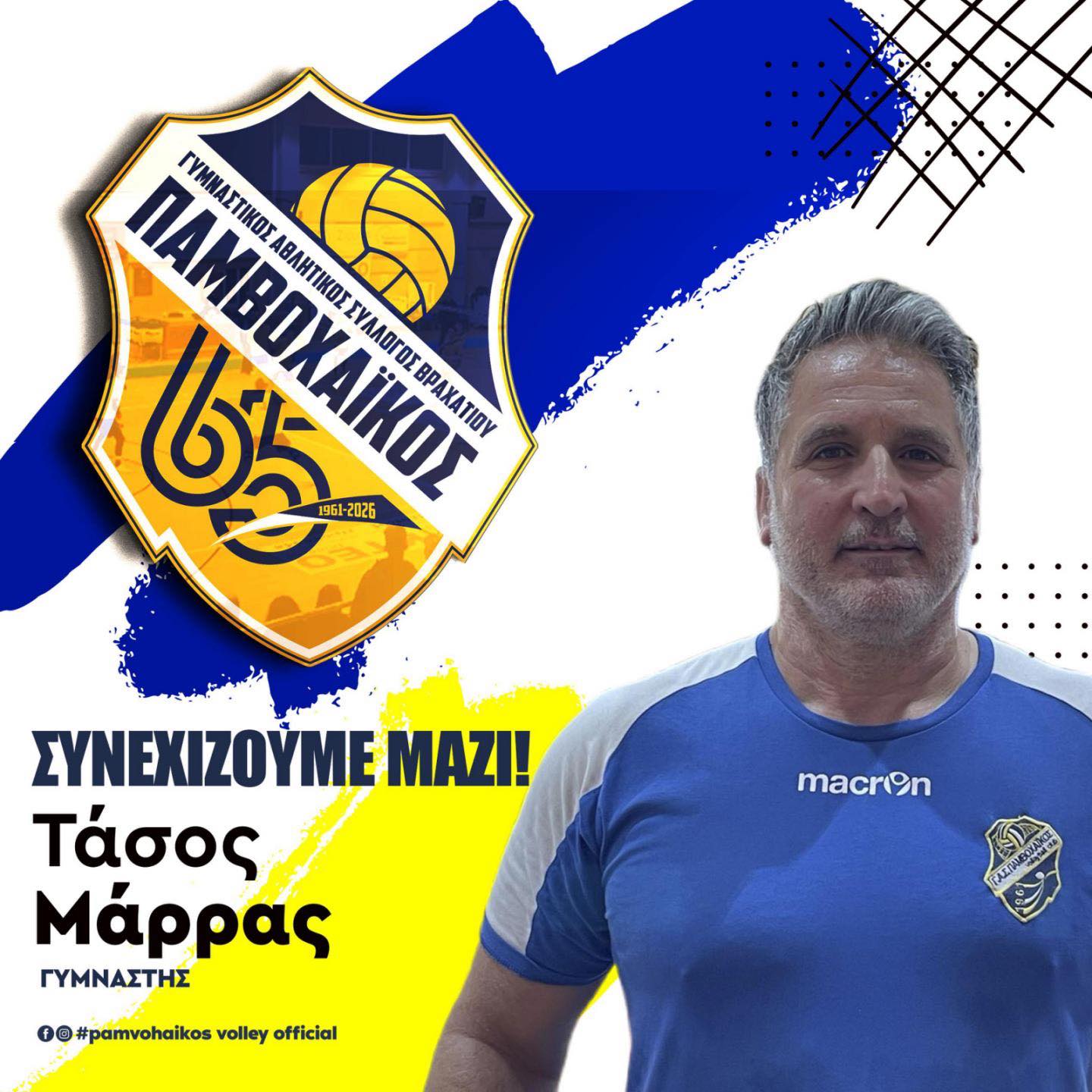 Ο γυμναστής κ. Μάρρας συνεχίζει να αποτελεί αναπόσπαστο μέλος του τεχνικού επιτελείου της ανδρικής ομάδας του ΓΑΣ Παμβοχαϊκού!