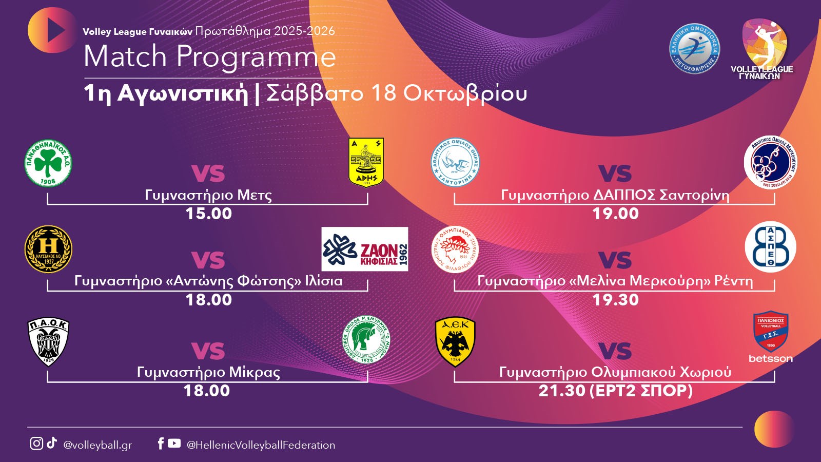 Το πρώτο σερβίς όμως της νέας αγωνιστικής περιόδου θα δοθεί στο κλειστό του Μετς, με τον Παναθηναϊκό να φιλοξενεί τον Άρη νωρίς το μεσημέρι του Σαββάτου (18/10, 15.00).