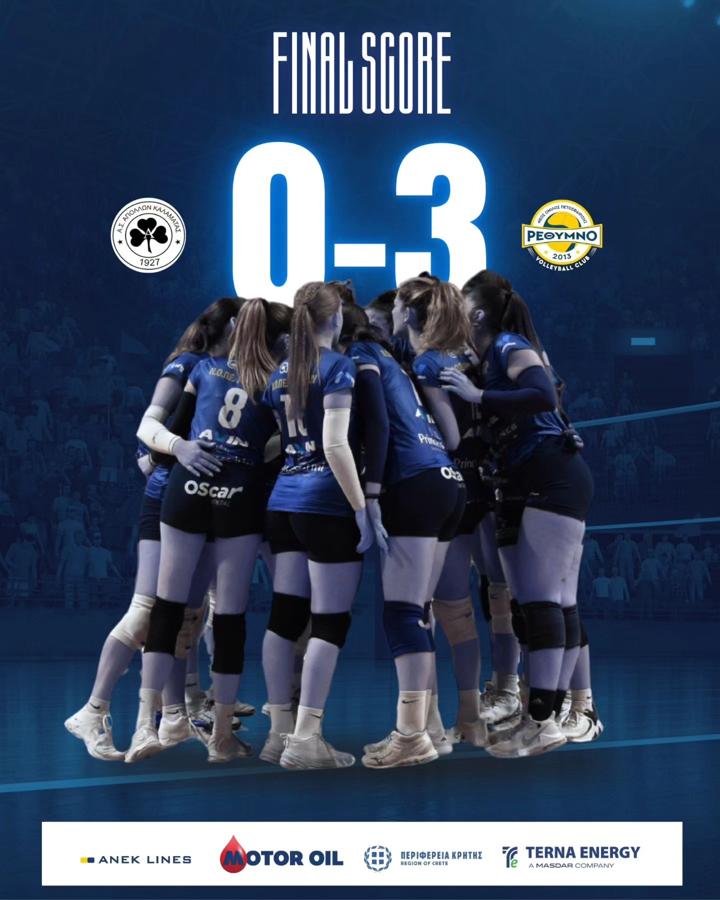 Η ομάδα του Ρεθύμνου έδειξε από νωρίς την ανωτερότητά της, επιβάλλοντας τον ρυθμό της από το πρώτο σετ και διατηρώντας υψηλή απόδοση σε όλη τη διάρκεια του αγώνα. Με σταθερή υποδοχή, αποτελεσματικό μπλοκ και σωστές επιθετικές επιλογές, εξασφάλισε μια καθαρή και δίκαιη νίκη στην πρεμιέρα του πρωταθλήματος.
