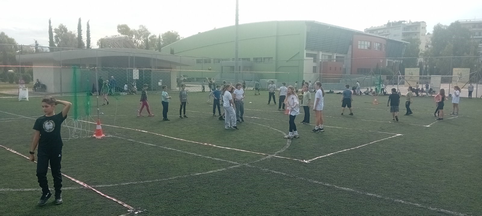 Σε 5 ειδικά διαμορφωμένα γήπεδα Mini Grass Volley στο τερέν του ποδοσφαιρικού γηπέδου, 110 μαθητές & μαθήτριες από το 4ο, το 5ο και το 11ο Δημοτικά Σχολεία Παλαιού Φαλήρου έπαιξαν για 3 ώρες σε μικτές ομάδες των 4 ατόμων και απόλαυσαν το παιχνίδι.