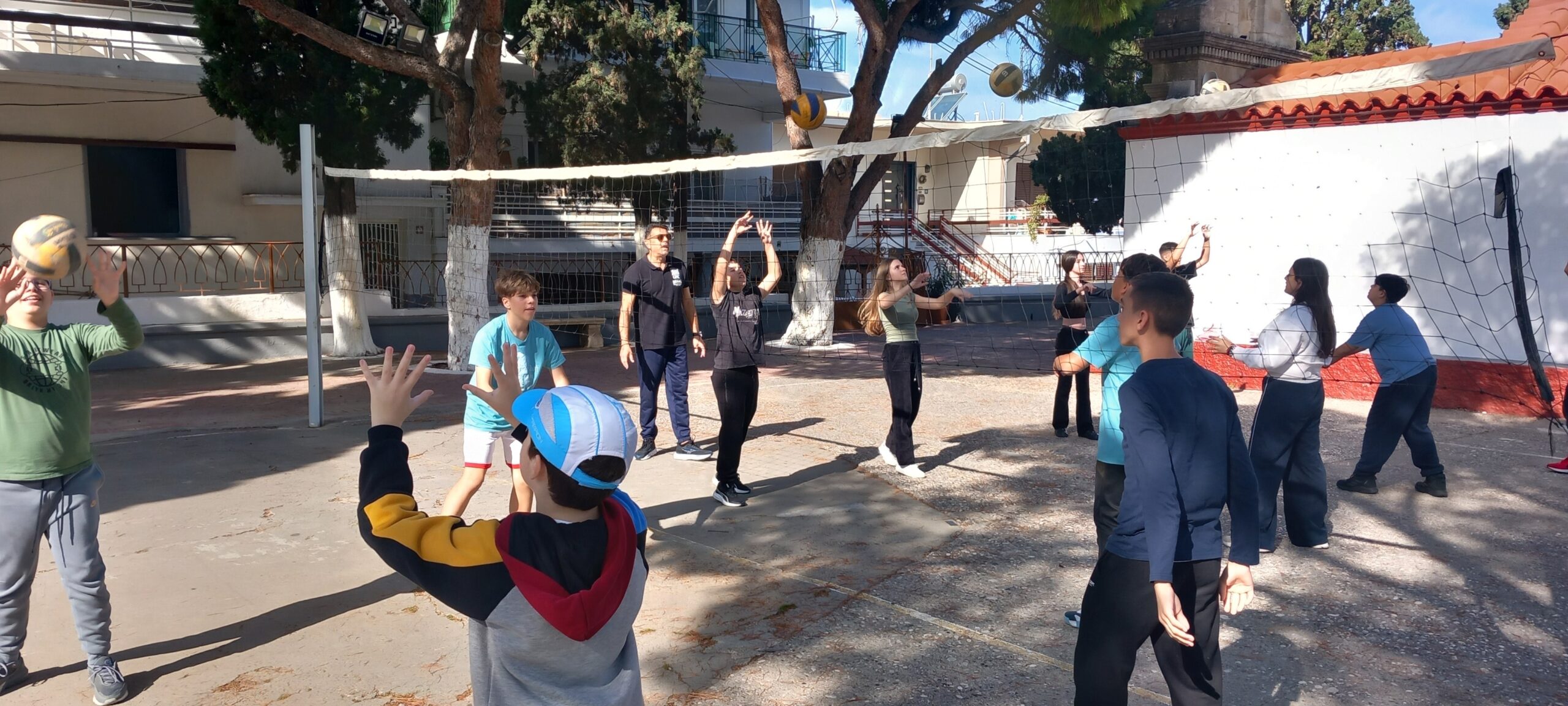Ο ομοσπονδιακός προπονητής μίλησε στους μαθητές και στις μαθήτριες για τους βασικούς κανόνες της πετοσφαίρισης και αφού απάντησε σε όλες τις ερωτήσεις έγινε πρακτική άσκηση στον προαύλιο χώρο του σχολείου.