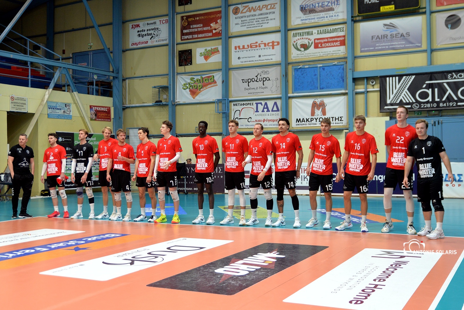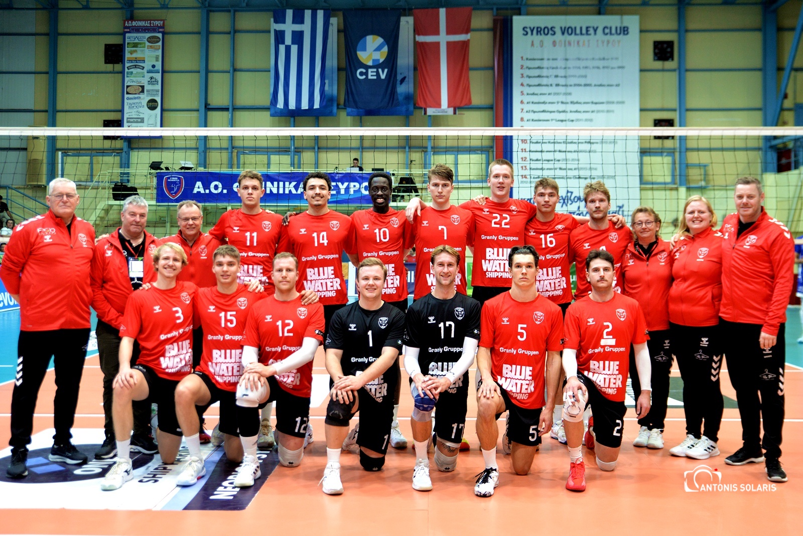 Με 14 μπλοκ, 3 άσσους και ανωτερότητα σε κάθε στατιστική κατηγορία, η ομάδα του Θάνου Τερζή έδειξε την εμπειρία και την ποιότητά της απέναντι στη νεοφώτιστη δανέζικη ομάδα, η οποία πραγματοποίησε το ευρωπαϊκό της ντεμπούτο. Ο Τρούχτσεφ ήταν πρώτος σκόρερ και κορυφαίος του αγώνα με 16 πόντους, ενώ ο Μικελούτσι κυριάρχησε στο φιλέ με 4 μπλοκ και καθοριστική παρουσία στο σερβίς.