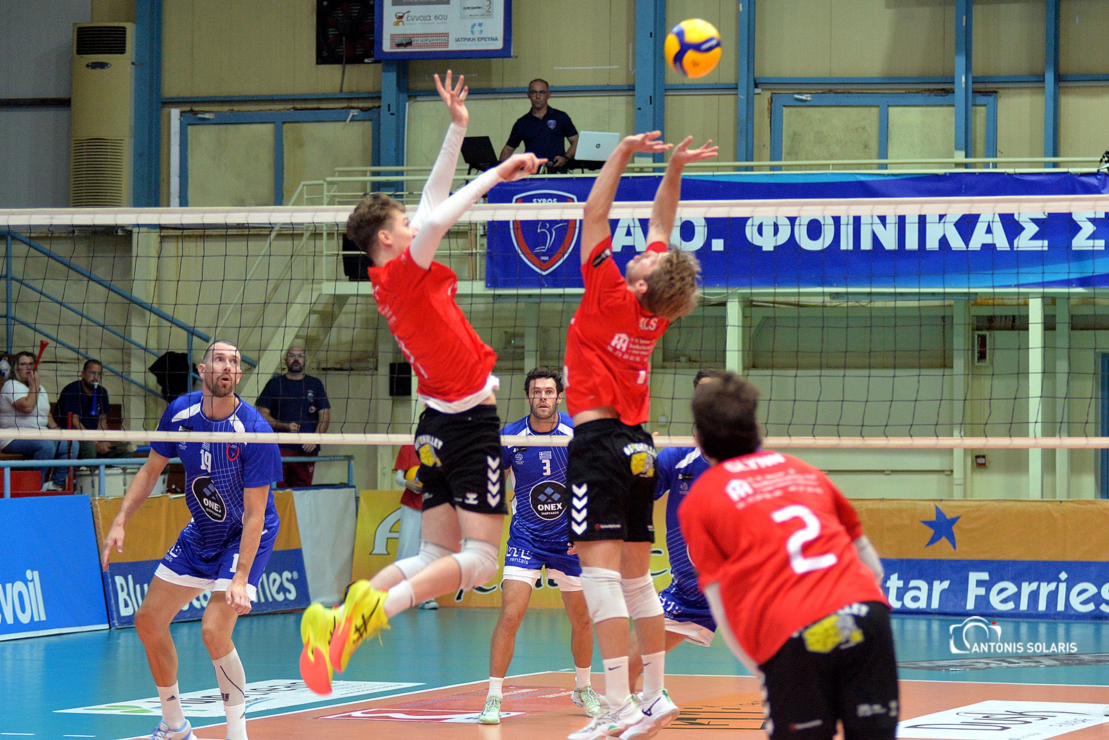 Στο δεύτερο σετ, οι Συριανοί δεν άφησαν περιθώρια. Με μπλοκ από Αναγνώστου και Μικελούτσι, η διαφορά εκτοξεύτηκε (12-6), ενώ ο Τρούχτσεφ υπέγραψε το 25-17 με άσο, χαρίζοντας το 2-0 στους γηπεδούχους.