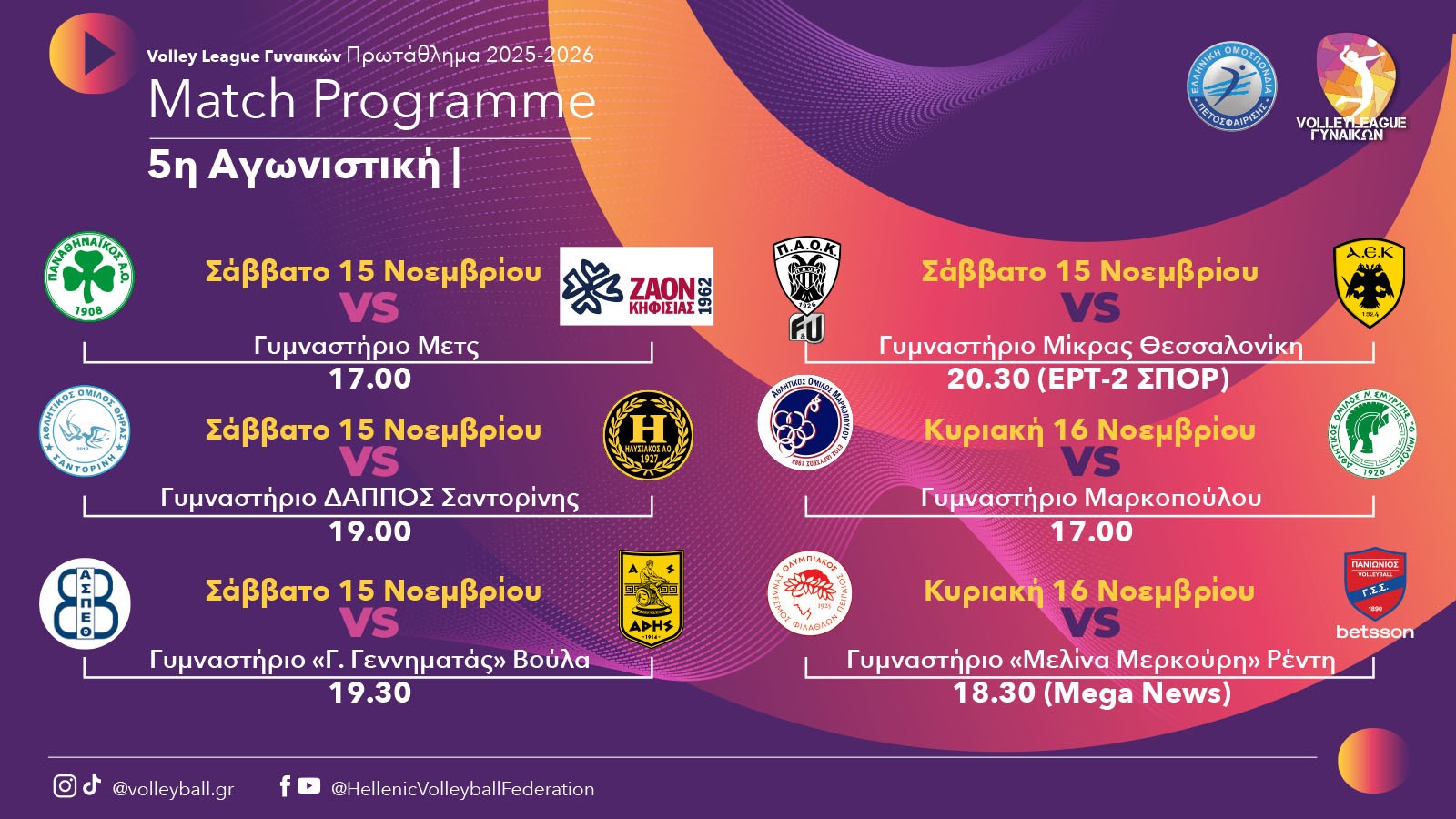 Αναλυτικά το πρόγραμμα της 5ης αγωνιστικής: