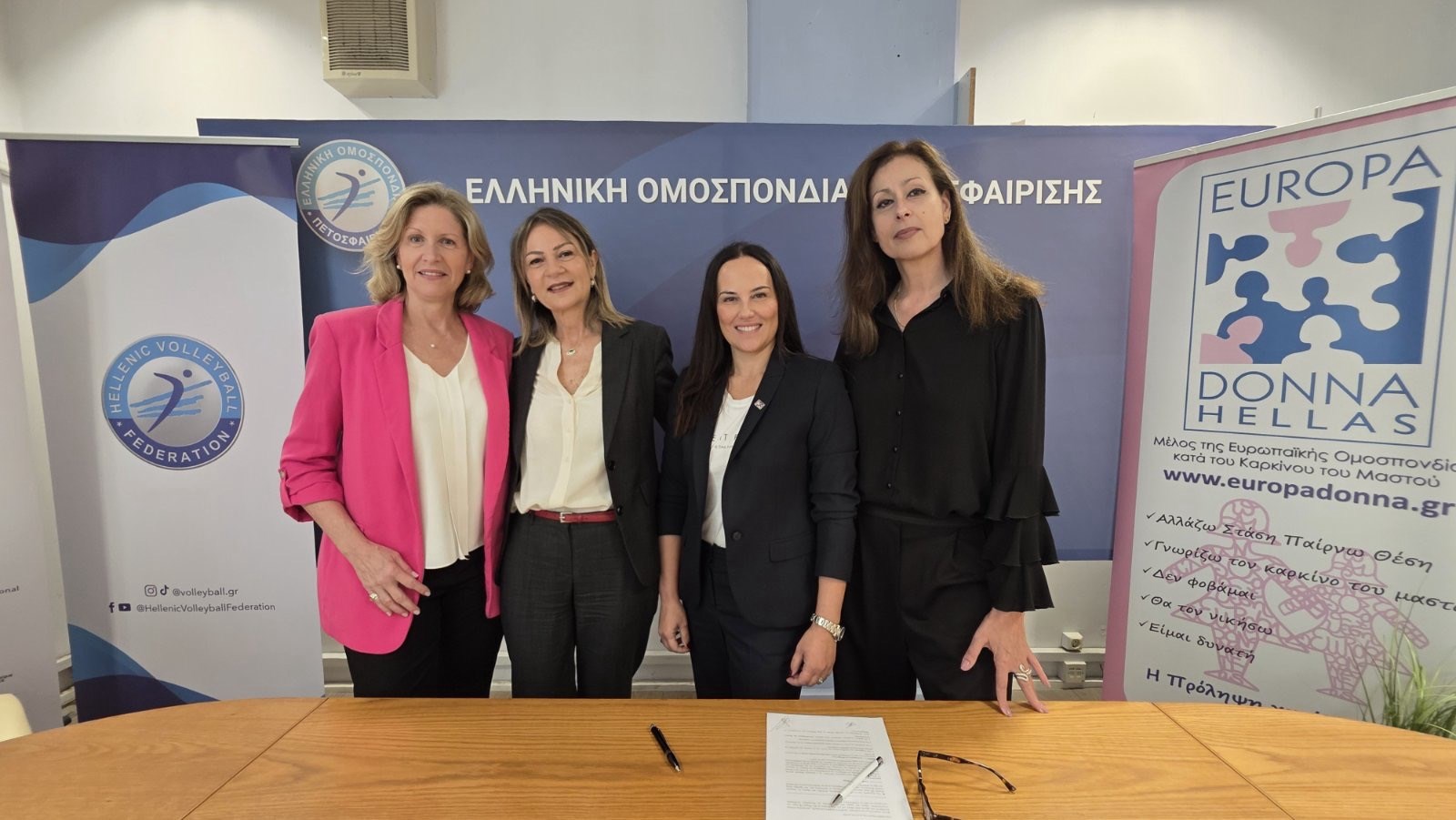 Στα γραφεία της Ε.Ο.ΠΕ. βρέθηκαν την Τρίτη 18/11 η Πρόεδρος της Europa Donna Hellas Φιορίτα Πουλακάκη και η Αντιπρόεδρος Μιμή Μαρσέλλου, για την επίσημη υπογραφή του μνημονίου συνεργασίας μεταξύ των δύο φορέων.