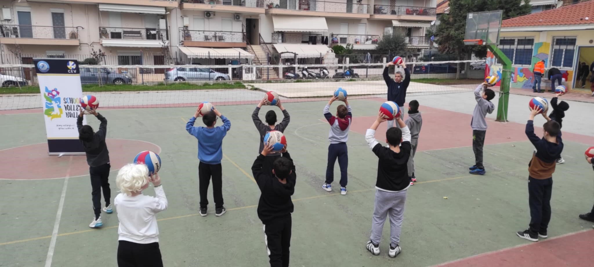 Στο  πλαίσιο εφαρμογής του αναπτυξιακού προγράμματος της Ε.Ο.ΠΕ και συμμετέχοντας στο ευρωπαϊκό πρόγραμμα CEV School Project  της Ευρωπαϊκής Ομοσπονδίας, οι ομοσπονδιακοί προπονητές σε συνεργασία με τους εκπαιδευτικούς Φυσικής Αγωγής του σχολείου Γιώτα Αφεντουλίδου, Μαρία Χαριτωνίδου και Γιώργο Καρανίσα, παρουσίασαν  το άθλημα της πετοσφαίρισης στους μαθητές και τις μαθήτριες της Ε΄ και ΣΤ΄ τάξης του σχολείου, μίλησαν για τα ιδιαίτερα χαρακτηριστικά της πετοσφαίρισης, εξήγησαν τους κανόνες του παιχνιδιού και μέσα από κινητικές δραστηριότητες τα παιδιά είχαν την ευκαιρία να συμμετάσχουν βιωματικά γνωρίζοντας βασικές δεξιότητες του αθλήματος.