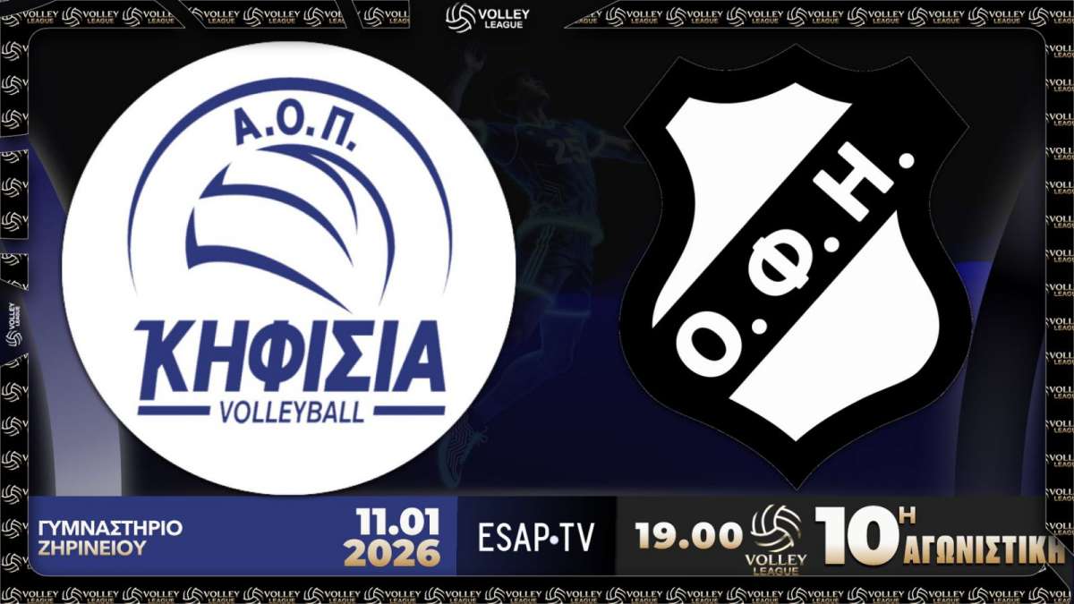 Γυμναστήριο Ζηρινείου, 19.00 (Live Streaming ESAP TV You Tube): Α.Ο.Π. Κηφισιάς – Ο.Φ.Η.